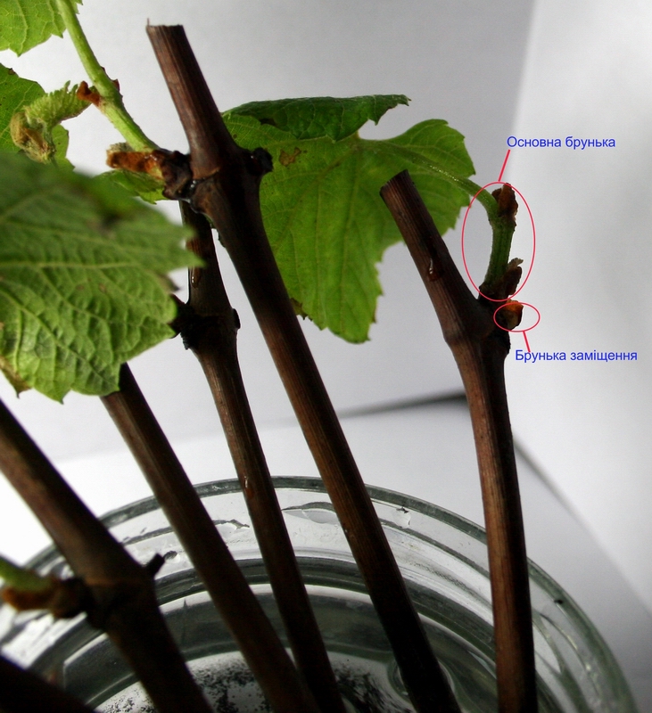 Кожна брунька складається з двох – основна і брунька заміщення. Тому багато-хто відщипує паросток з основної бруньки, щоб менше поживних речовин треба було чубукові, і краще розвивались корінці. Але я цього не зробив заради експерименту.
