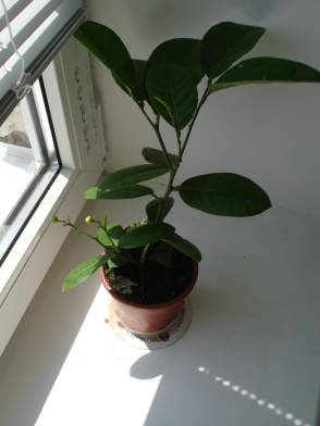 | Ітак я таки завів собі довгоочікуванну рослинку. Оськільки я завів її відчасти за допомогою ціго сайту та безпосередньо адміністрації, то я б хотів і надалі за допомогою Вас, пройти шлях з його вирощування від А... до Я..., поскільки ніколи таким не займався, але маю бажання. Отож з Вашою допомогою, Поїхали. Сьогодні прийшла посилка, з лимоном, я сильно хвилювався як він вижеве в дорозі, але ніби слава Богу нормально, він був вологий від змоченого якимось розчином туалетного паперу. Він був у горщику із землею, я його поставив на підвіконня, злегка полив та окропив. Що дальше панове?. Доречі ось декілька фото, мого першого улюбленця)