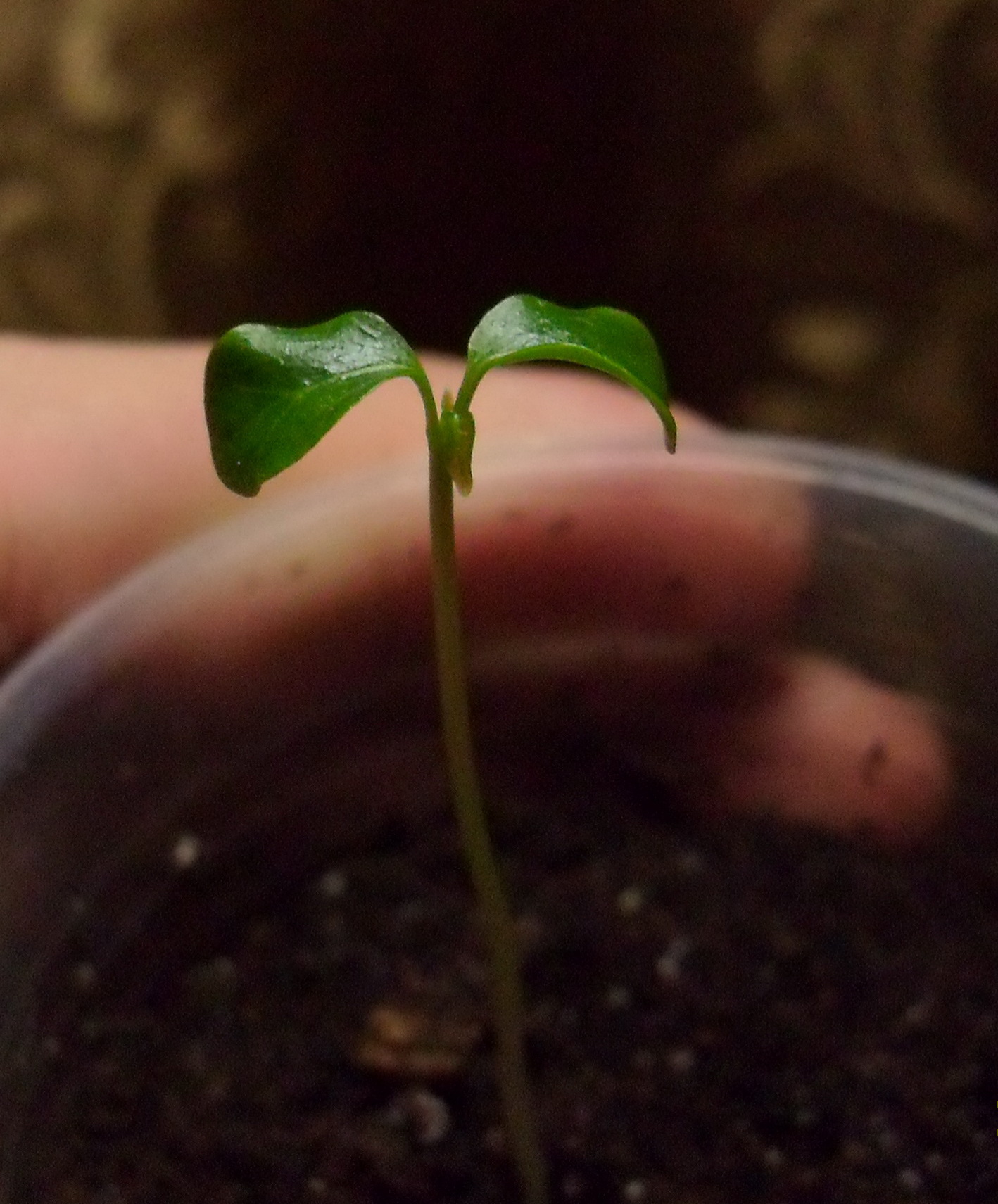 В даний момент висота рослини сягає 8 см. Досвічується в міру можливості, але світловий день триває 12-13 год. на добу. Дренаж - дрібні камінці на дні та небагато в грунтосуміші. підливаю раз на день, в малій кількості і біля рослини а не на коріння (попри стовбур). Так є менша ймовірність перелити і допустити загнивання корінців.